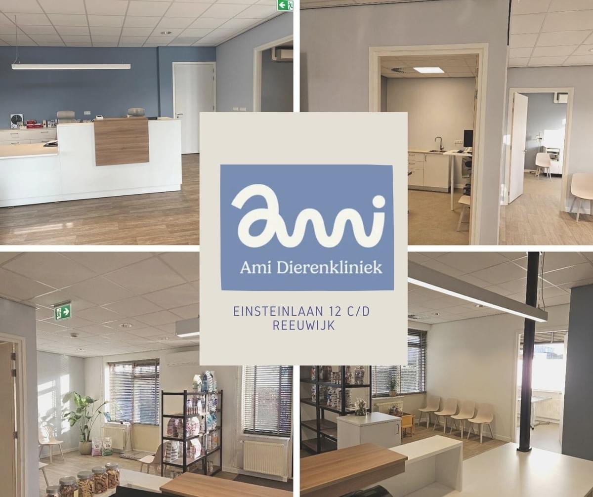Rust, overzicht en optimale zorg voor gezelschapsdieren waren het uitgangspunt bij de inrichting van AMI Dierenkliniek. Zo zijn er nu aparte spreekkamers voor honden en katten, waardoor stress voor dieren zoveel mogelijk wordt beperkt. Daarnaast werkt het team met nieuwe apparatuur voor moderne diagnostiek en behandeling: